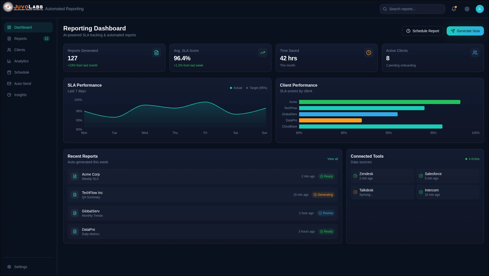 JuvoLabs is an AI-first product team that designs, builds, and ships production AI for small to medium sized businesses. From call insights to automated reporting, we turn manual work into working AI in weeks, at a cost that makes sense.