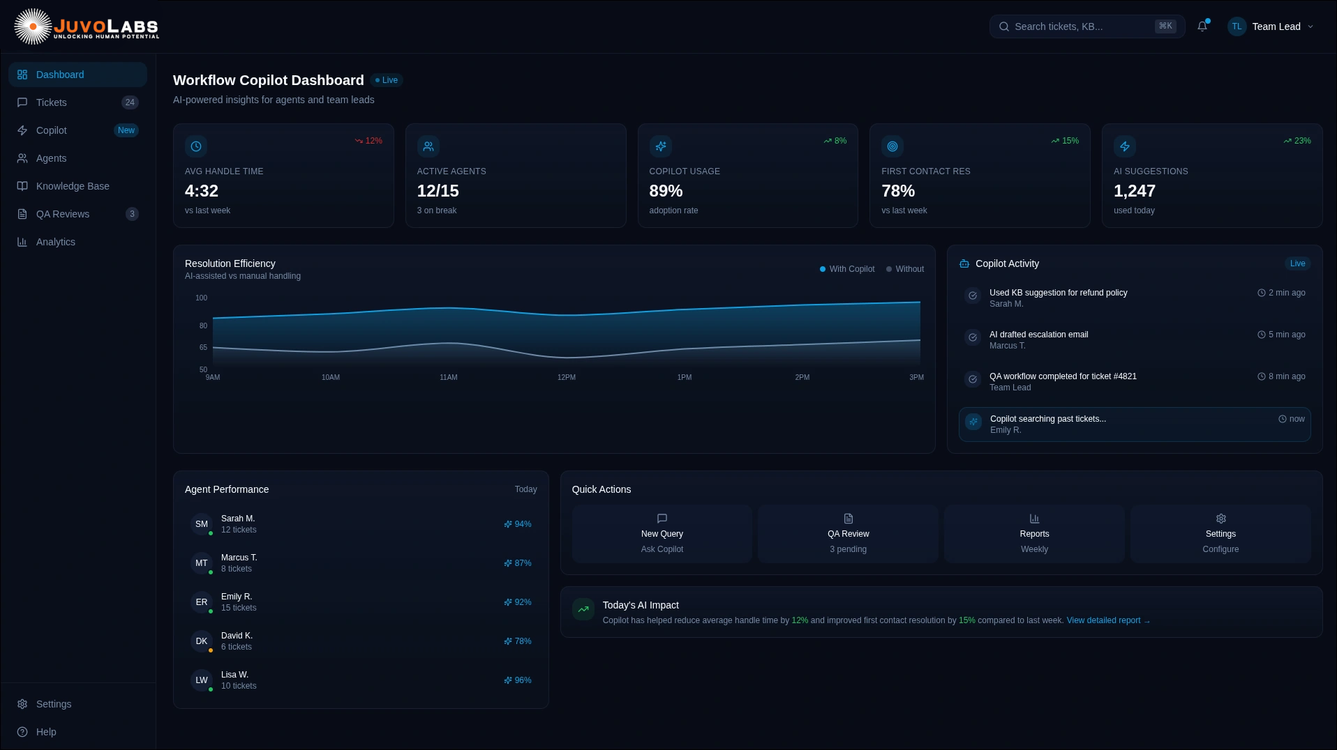 JuvoLabs builds custom AI for BPOs and support organizations that: